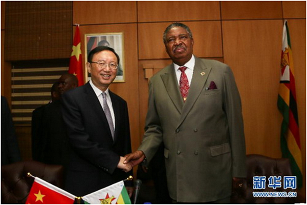 President Mugabe asked Yang Jiechi to convey his kind greetings and sincere gratitude to President Xi Jinping. He said that the Zimbabwean government and people are grateful to China for its support and assistance to Zimbabwe's economic and social development. The profound traditional friendship between the two nations should be inherited and carried forward in a continuous manner. Zimbabwe stands ready to work with China to comprehensively deepen mutually beneficial cooperation in various fields. China is friend of Africa and Zimbabwe will constantly and actively push forward the development of Africa-China relationship.