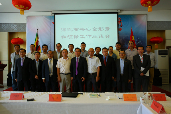 9月9日,中国驻津巴布韦使馆召开津安全形势和领保工作座谈会。使馆主要领导及各部门负责人,津中资企业商会、华商会、华联会代表以及各地区的领保联络员等30多人与会。驻津大使黄屏出席并发表讲话,使馆政务参赞赵宝钢主持会议。会议请津首都哈拉雷警察局中国科科长穆卡奇警官介绍津近期安全形势和安全防范知识,与会人员就有关问题进行了讨论。