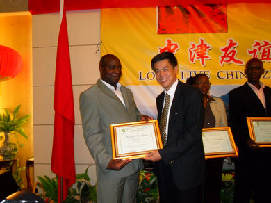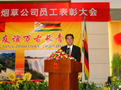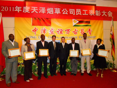 12月15日,驻津巴布韦大使忻顺康出席天泽烟草公司2011年度职工表彰大会,天泽烟草公司总经理张庆钢及该公司近百名职工出席。