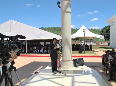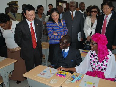 穆加贝总统在致辞中感谢中国政府对津教育领域的大力支持,高度评价津中传统友谊,称赞学校设计完善、施工迅速、质量一流,津许多偏远地区小孩上学难,该校的建成将有助于津政府克服教育难题。