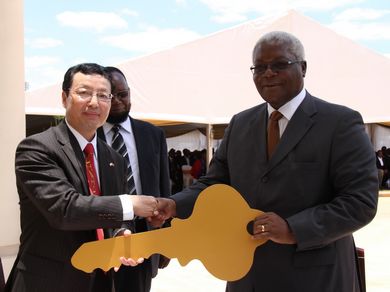 2013年1月31日,驻津巴布韦大使林琳出席我公司承建马佐威孤儿学校交接仪式, 津巴布韦总统穆加贝夫妇、穆菊茹副总统率津联合政府部长高官、中马绍纳兰省省长宾杜、当地酋长、群众和学生代表近千人出席。