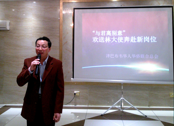 2015年8月30日,驻津巴布韦大使林琳出席津华人华侨联合总会(以下简称华联会)举办的欢送仪式。仪式上,华联会播放了其精心制作的幻灯片,展现了林大使在津期间勤勉工作、深入基层、关爱侨胞的点滴瞬间。