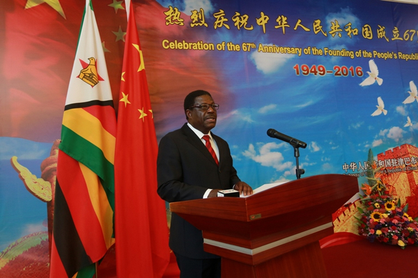 2016年9月23日,中国驻津巴布韦大使黄屏和夫人在使馆举行招待会,热烈庆祝中国人民共和国成立67周年。津代外长、工商部长毕马,财政部长奇纳马萨,新闻部长马绍威,信息通信技术部长曼迪万兹拉,老兵事务部长杜比,矿业部长奇哈克瓦,哈拉雷省省长奇库夸,民盟青年书记奇庞加,多名副部长等津党政军官员及社会各界代表,驻津外交使节,中资企业和华侨华人代表,中津媒体记者等约500人出席。