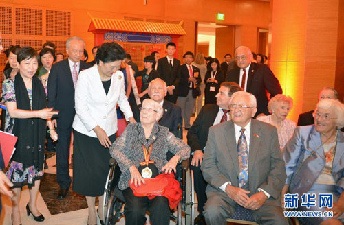招待会开始前,刘延东亲切会见当年美国“飞虎队”老兵杰·温雅德等以及“飞虎队”遗属并与他们进行了热情友好的交谈。