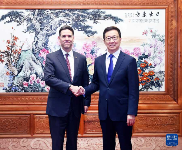 韩正表示,今年以来,习近平主席同特朗普总统三次通话,达成一系列重要共识。中美两国间拥有广泛共同利益和广阔合作空间,可以成为也应当成为伙伴和朋友。希望美方同中方相向而行,相互尊重、和平共处、合作共赢,共同找到新时期两个大国正确相处之道,造福两国,惠及世界。俄勒冈州长期同中国保持友好合作关系,希望瓦格纳参议长和各位议员继续推动双方加强沟通交流,深化民间友好,为中美地方合作发挥示范作用。