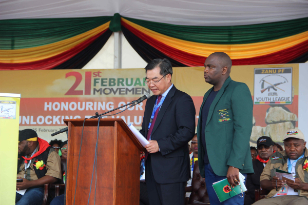 黄屏大使宣读习近平主席致穆加贝总统93岁生日贺函