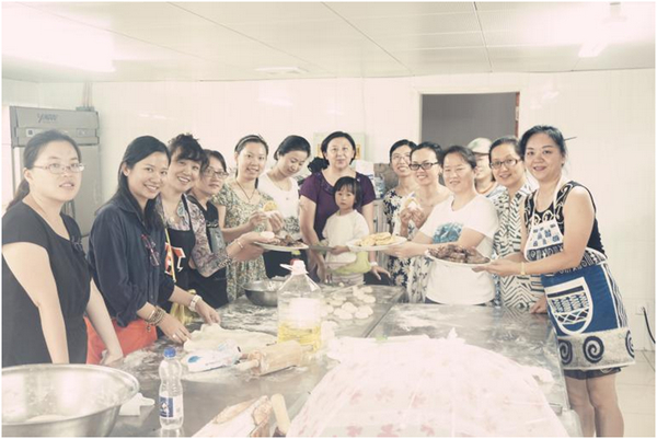 在锅碗瓢盆交响曲和阵阵欢声笑语的伴奏下,烹饪技能交流活动闪亮开场。妇女小组中的三位烹饪高手白云、刘丹和朱丽丽,分别向大家传授牛肉饼、苹果派和饼干的制作“秘笈”。大家听得仔细,看得用心,边听、边想、边交流,官邸的大厨房里好不热闹。“调制牛肉馅时放什么调料?”“牛肉饼怎样和面才好吃?”“苹果派的面皮怎么做?”“为什么要用面筛?”在大使夫人张爱萍和这三位高手的耐心讲解下,原先看着繁琐复杂的中西面点,顿时变得简单易学了。师傅教得认真细心,学员学得一丝不苟,和面、备料、制作、烘焙,大家兴致高昂,个个争先恐后,很快一个个精致的面点就制作成功了。张爱萍亲自上阵,除了演示和面技能外,还为大家烹制了牛排、红菜汤等精美菜肴。厨房里很快就饭香四溢,引得大家食欲大开。