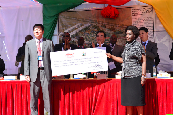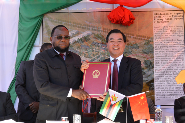 2016年5月28日,津巴布韦北马塔贝莱兰省省会卢帕内鼓乐阵阵,中津两国国旗在蓝天白云下并肩飘扬,中国政府在当地援建的中非友好小学交接仪式隆重举行。数百名当地百姓和小学生代表来到现场,他们踩着欢快的步伐,唱起悠扬的歌曲,欢迎远道而来的客人。中国驻津巴布韦大使黄屏、津基础教育部长道考拉、北马省长马瑟马、国会议员库马洛、巩博和恩科莫、教育部常秘马桑戈、北马省官员、部落酋长以及小学建设总承包方安徽省外经建设集团代表张士斌出席了仪式。