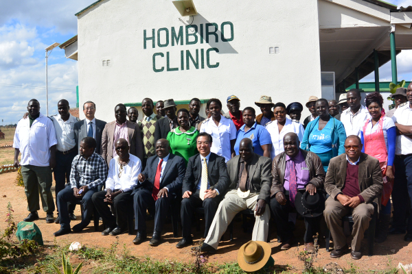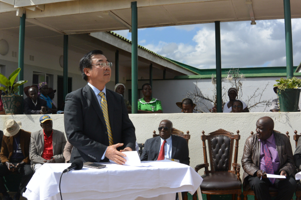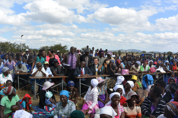 6月13日上午,黄屏大使来到位于津巴布韦首都哈拉雷市100公里以外的东马绍纳兰省Hombiro乡村诊所,代表中国大使馆向该诊所捐赠物资。津巴布韦狱警总监兹曼迪将军也从首都专程陪同黄大使来到诊所参加捐赠仪式。当地酋长、议员率近千名村民在诊所门前夹道欢迎并列队迎接远道而来的中国贵宾。