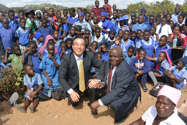 捐赠活动现场,议员穆达瑞卡瓦向大家逐一展示中国大使馆向Hombiro乡村诊所捐赠的物资。每展示一件物资时,村民们都自发地鼓掌致谢,“China! China!”的欢呼声在原野上回响。酋长奇波亚米蒂则代表Hombiro乡村诊所周边7000余名村民向黄大使回赠了象征着当地最高敬意的礼物-1只活羊。村民们还穿上节日的盛装,大家载歌载舞,向黄大使和中国好朋友表达最真诚的感激和最美好的祝愿!