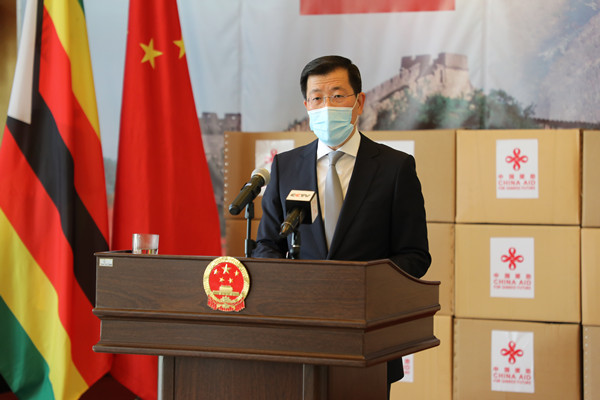 6月19日,驻津巴布韦大使郭少春举行媒体吹风会,介绍中非团结抗疫特别峰会内容和重要意义并回答记者提问。