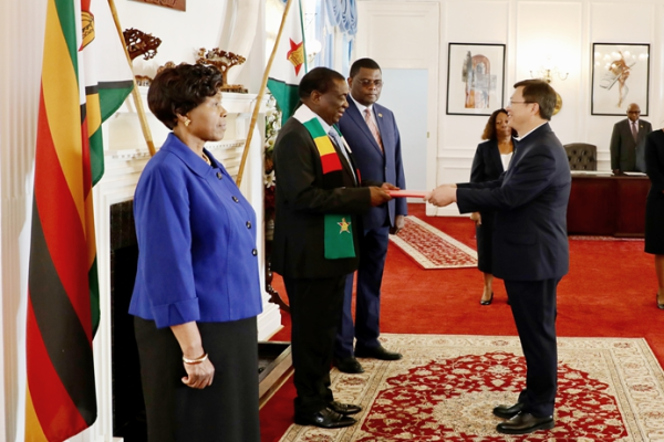 2023年6月7日,中国驻津巴布韦大使周鼎向津巴布韦总统姆南加古瓦递交国书,双方并就中津关系等进行深入交谈。
