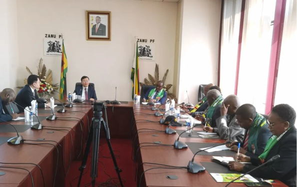 6月27日,周鼎大使拜会津巴布韦执政党民盟副主席、第二书记莫哈迪,民盟部分政治局委员在座。