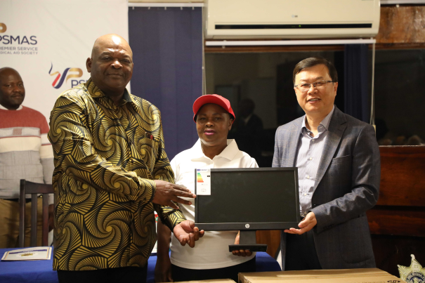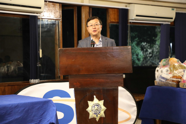 8月18日,周鼎大使出席津巴布韦警察总署年度慈善高尔夫球赛颁奖仪式并向Emerald中学捐赠电脑设备。津警察总监马汤加等出席。