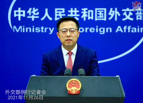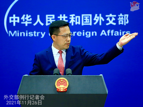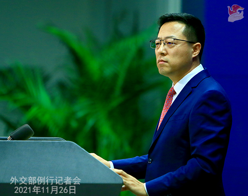 赵立坚:11月18日,立陶宛政府不顾中方严正交涉,允许台湾当局设立“驻立陶宛台湾代表处”。此举公然在国际上制造“一中一台”,开创了恶劣先例。为维护国家主权和国际关系基本准则,中国政府已宣布将中立两国外交关系降为代办级。11月26日,中国外交部正式照会立陶宛外交部,决定将中国驻立陶宛外交机构更名为中华人民共和国驻立陶宛共和国代办处,并要求立方相应更改驻华外交机构称谓。