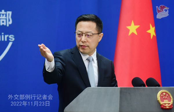 赵立坚:习近平主席和尹锡悦总统日前在出席二十国集团领导人第十七次峰会期间举行双边会晤,就中韩关系和共同关心的国际地区问题深入交换意见,达成一系列重要共识,为下一步中韩关系发展指明了方向。中方愿同韩方一道落实好两国元首重要共识,推动中韩关系深化发展。