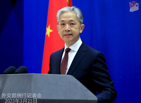 汪文斌:3月23日,美国海军“米利厄斯”号军舰未经中国政府允许,擅自进入中国西沙群岛领海,侵犯中国主权,威胁中国安全,破坏有关海域的和平与安宁。中国人民解放军南部战区依法进行跟踪监视并予以警告驱离。