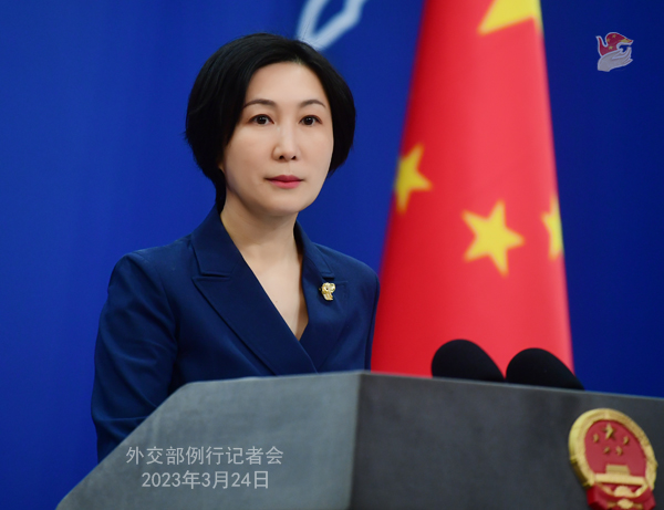 毛宁:中方对叙利亚和沙特就重新开放两国使馆达成一致表示欢迎。叙利亚回归阿拉伯大家庭,有利于阿拉伯国家实现团结和振兴。我愿再次强调,中方坚定支持阿拉伯国家加强团结协作,增强战略自主,共同促进地区的和平、稳定与发展。