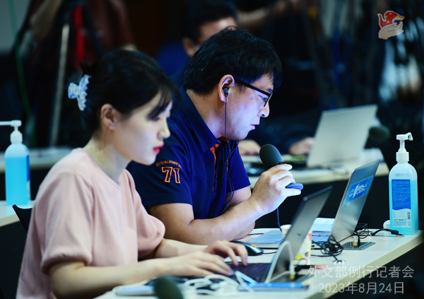 汪文斌:刚才我已经清楚阐明了中方立场。针对你提的问题,我也愿意再次重申,日方强行启动核污染水排海,公然向全世界转嫁核污染风险,这是极端自私、极不负责任的错误行为。所有利益攸关方都有权利、有责任采取必要防范措施,维护海洋环境安全,维护食品安全和公众健康。