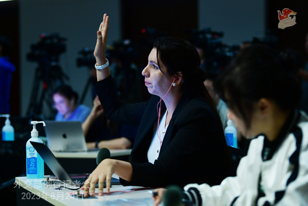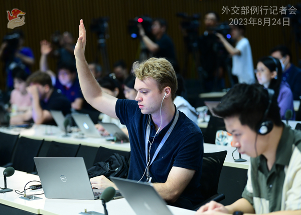 汪文斌:当地时间8月23日,金砖国家领导人第十五次会晤在约翰内斯堡举行。习近平主席出席会晤并发表题为《团结协作谋发展 勇于担当促和平》的重要讲话。