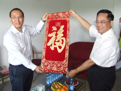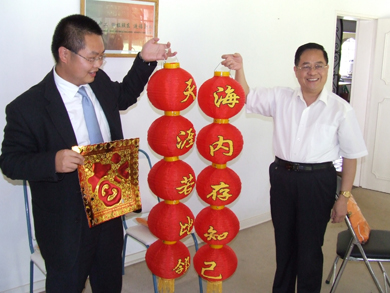 继1月21日走访华侨厂店之后,袁大使于23日又先后走访了华为、中兴等7家中资公司,向留在津巴布韦过年的中资公司人员送去新年祝福和具有中国特色的年货。