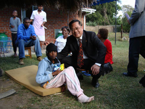 4月21日,津巴布韦华商会部分新一届领导成员或配偶(赵科、张力君、汪礼平、胡建平、张朝阳、吴江涛、李涛、林哲永、于春利、吕洪)来到哈拉雷“黎明艾滋病关护中心”,郑重举行慈善捐助活动,中国驻津巴布韦大使袁南生夫妇应邀参加。