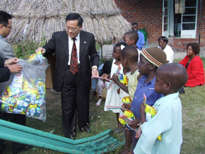 捐助仪式结束后,袁大使带领大家走到艾滋病孤儿们中间,亲手将食品交给他们,并和他们亲切合影。孩子们高兴得唱起了歌。新华社驻津记者及当地新闻媒体对此次活动进行了采访。