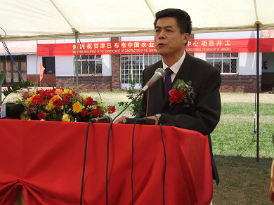 10月22日上午,中国驻津巴布韦大使忻顺康与津巴布韦农业部代理部长乔姆波代表两国政府出席了中国援津巴布韦农业技术示范中心项目开工仪式,并发表讲话。