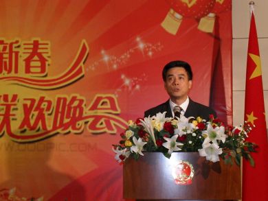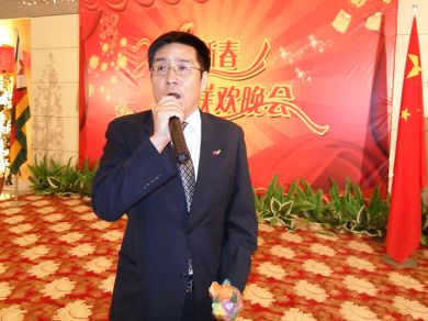 驻津巴布韦大使忻顺康在2010年在津华侨华人春节招待会上发表讲话。