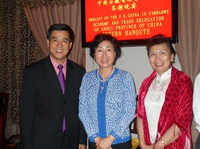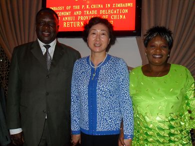 驻津巴布韦大使忻顺康夫妇和安徽省华建慧副省长合影 |