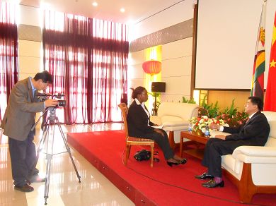 9月29日,驻津巴布韦大使忻顺康接受津主流媒体采访,介绍了新中国成立61年取得的主要成就和面临的问题、中国经济快速发展的经验、以及中津两国关系蓬勃发展情况,特别是中非合作论坛在津进展情况等,并就记者感兴趣问题回答了记者的提问。此次采访在当地主流电视台进行了转播。