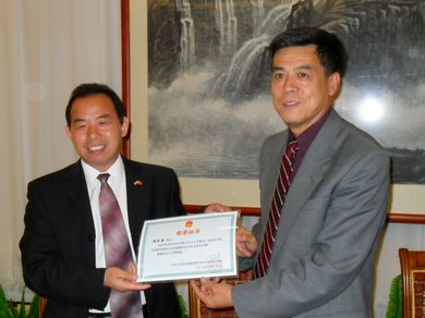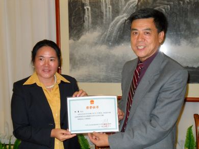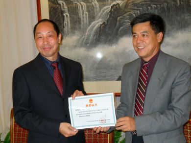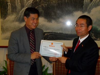 忻顺康大使在讲话中感谢专家们过去一年的艰苦努力,称赞他们为中津友好关系做出了特殊贡献,并向专家们颁发了“为中津关系做出杰出贡献的友好使者”的荣誉证书。