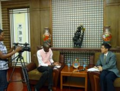 驻津巴布韦大使忻顺康接受津国家电视台采访