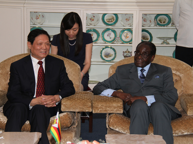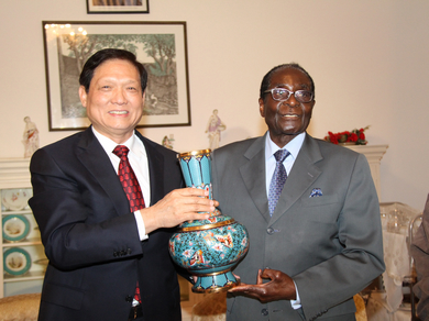 中共中央政治局委员、北京市市委书记刘淇拜会穆加贝总统2