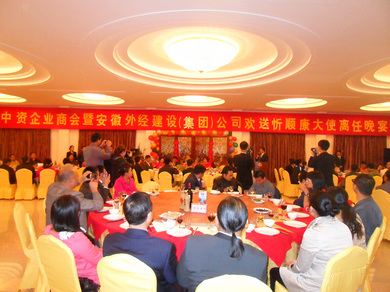 6月10日晚,驻津巴布韦大使忻顺康夫妇出席中资企业商会欢送晚宴,旅津中资企业代表共100余人出席,中资企业商会会长单位中烟天泽公司副总经理蔡冰、安徽外经建设集团公司总裁蒋庆德、商务参赞韩兵分别致送别辞,向忻大使夫妇表达了恋恋不舍的惜别之情。