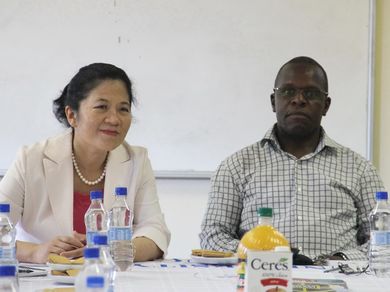 大使夫人廖元翠感谢马希里院长的欢迎和院方的周到安排,表示读书会全体成员很高兴能走进津最高学府和孔子学院,很期待与津大师生们开展交流,增进了解。廖称,中津传统友谊历久弥坚,青年代表着未来,是中津友好合作的传承者和发扬者,更需加强交流。廖并祝在座的女士们“三八妇女节”快乐。