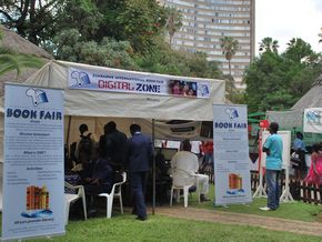 2013年10月4日,驻津巴布韦使馆青年读书会组织馆员参观2013年津巴布韦国际书展。本届书展在津首都哈拉雷市中心花园举行,为期6天,主题是“支持创新、写作、出版和阅读,实现非洲发展”,来自联合国信息中心、津巴布韦大学、南部非洲研究与文献中心等30余家国际组织、津知名学府、学术机构、出版社和书商参展,书展期间还举办了读书沙龙和作者见面会等活动。