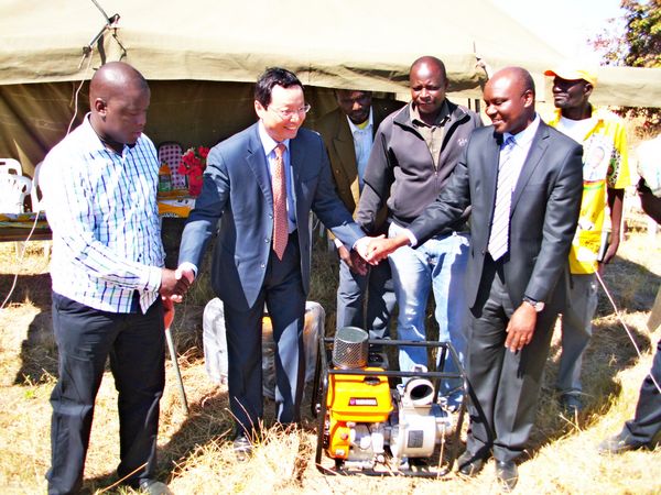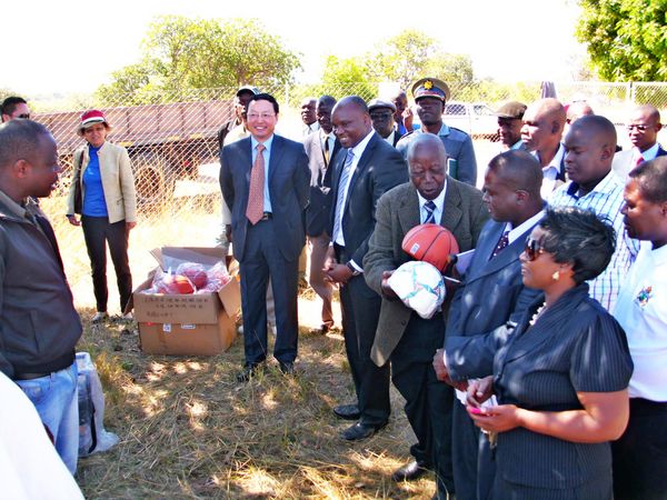 7月25日,驻津巴布韦使馆在津西马省文巴地区举行向当地民众捐赠水泵及提供奖学金仪式,林琳大使、崔春政务参赞、华联会副会长周学恭与津矿业部长奇哈克瓦、文巴地区行政长官、部落酋长、库塔玛中学校长等逾50人出席。仪式上,林大使代表使馆向当地群众代表捐赠了40台水泵及足球等体育用品,并宣布华联会将每年向当地小学提供5000美元奖学金。
