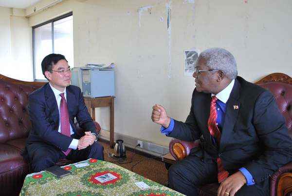驻津巴布韦大使黄屏到任拜会津民盟行政书记、内政部长乔姆波