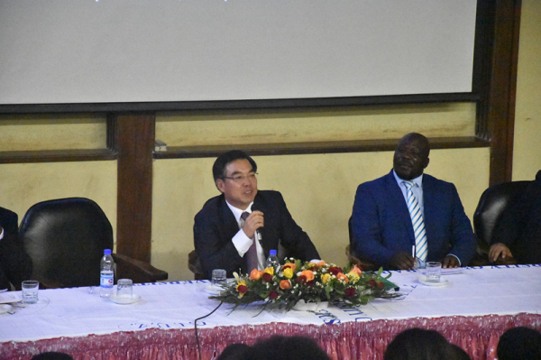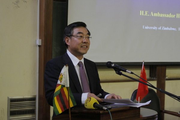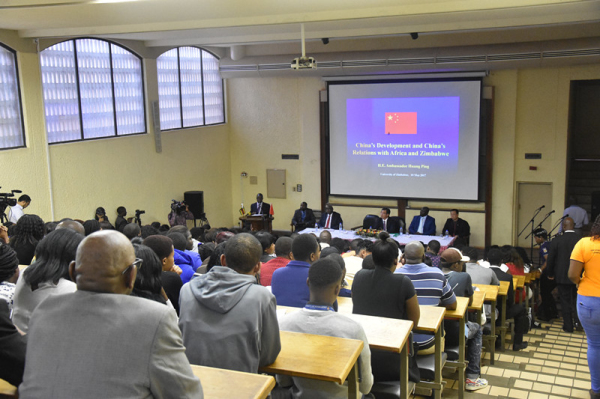 5月10日,中国驻津巴布韦大使黄屏应邀在津巴布韦大学发表题为“中国发展形势与中非和中津关系”的演讲,介绍中国当前发展形势以及中非、中津友好合作的成果与前景。津大副校长兼孔子学院津方院长马希礼、津大商学院院长龚备、津大师生及中津记者等200余人出席活动。