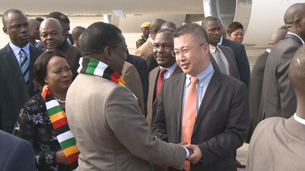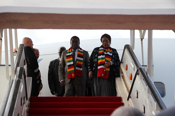 当地时间4月7日早晨七点三十分,津巴布韦总统姆南加古瓦结束对中国为期5天的国事访问,偕夫人及外交部长莫约等代表团成员乘专机返抵首都哈拉雷。中国驻津使馆赵宝钢临时代办和夫人,李军武官,李耀辉经商参赞及使馆其他主要工作人员,中国国际广播电台、中国中央电视台驻津记者等前往机场迎接。津副总统奇温加及哈拉雷省省长奇库夸等多名政要也到机场迎接姆南加古瓦总统一行。