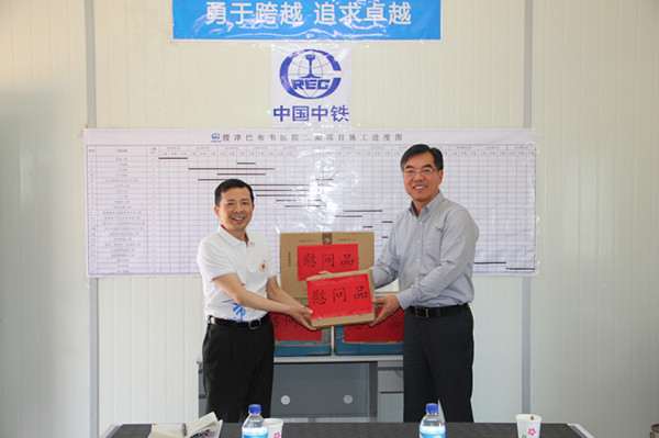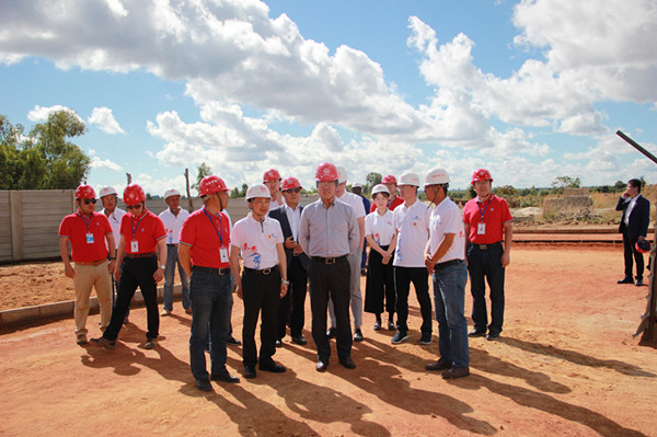 黄大使实地考察了正在建设中的医院二期项目,详细了解了项目规划设计情况、工程进度及施工过程中遇到的困难,现场讨论了解决问题的有关方案,要求企业确保工期,保质保量完成工程建设。黄大使同时考察了已落成的医院一期项目实际运行和使用情况。
