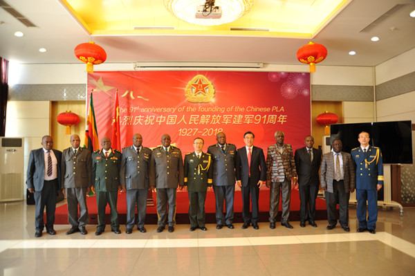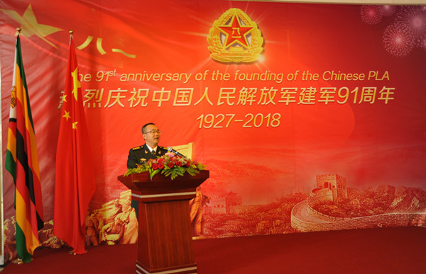 7月20日,中国驻津巴布韦大使馆陆、空军武官李军大校举行招待会,庆祝中国人民解放军建军91周年,中国驻津大使黄屏及使馆全体外交官,津国防军参谋长雄巴亚达空军少将、陆军参谋长西贡卡少将、空军参谋长纳扎威德空军少将、狱警总监兹曼迪等多名津军警高官,津各届友好人士、多国驻津使节和武官团成员、中资机构代表、华人华侨代表共300余人出席。