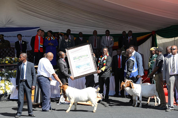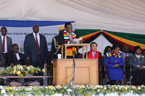 姆南加古瓦总统与黄屏大使共同为项目破土,并为项目揭牌。姆在致辞中对中国在此项目及其他项目中给予津巴布韦的资金和技术支持表示感谢,认为该项目的顺利推进是津中两国友谊的充分体现,是习近平主席一带一路倡议在非洲和津巴布韦的真实践行,衷心感谢习近平主席在他今年4月对华国事访问期间就项目融资合作作出重要决定,为该项目最终成功实施提供了关键支持。姆说“我们永远感谢中国兄弟为津巴布韦实现跨越式发展提供的支持与帮助。这个机场的扩建将增加客运及货运运力,提高效率,改善服务质量,增加竞争力。该项目完成后将为津巴布韦的青年和妇女们创造很多就业机会。”姆表示,当前津巴布韦正在大力改善投资环境,不断提升对外开放水平,以促进经济快速发展,实现2030年建成中等收入国家的目标,基础设施是实现经济发展的前提,希望津方各部门能够与中方密切配合,保质保量完成项目建设,助力津经济发展,增加津民众福祉。