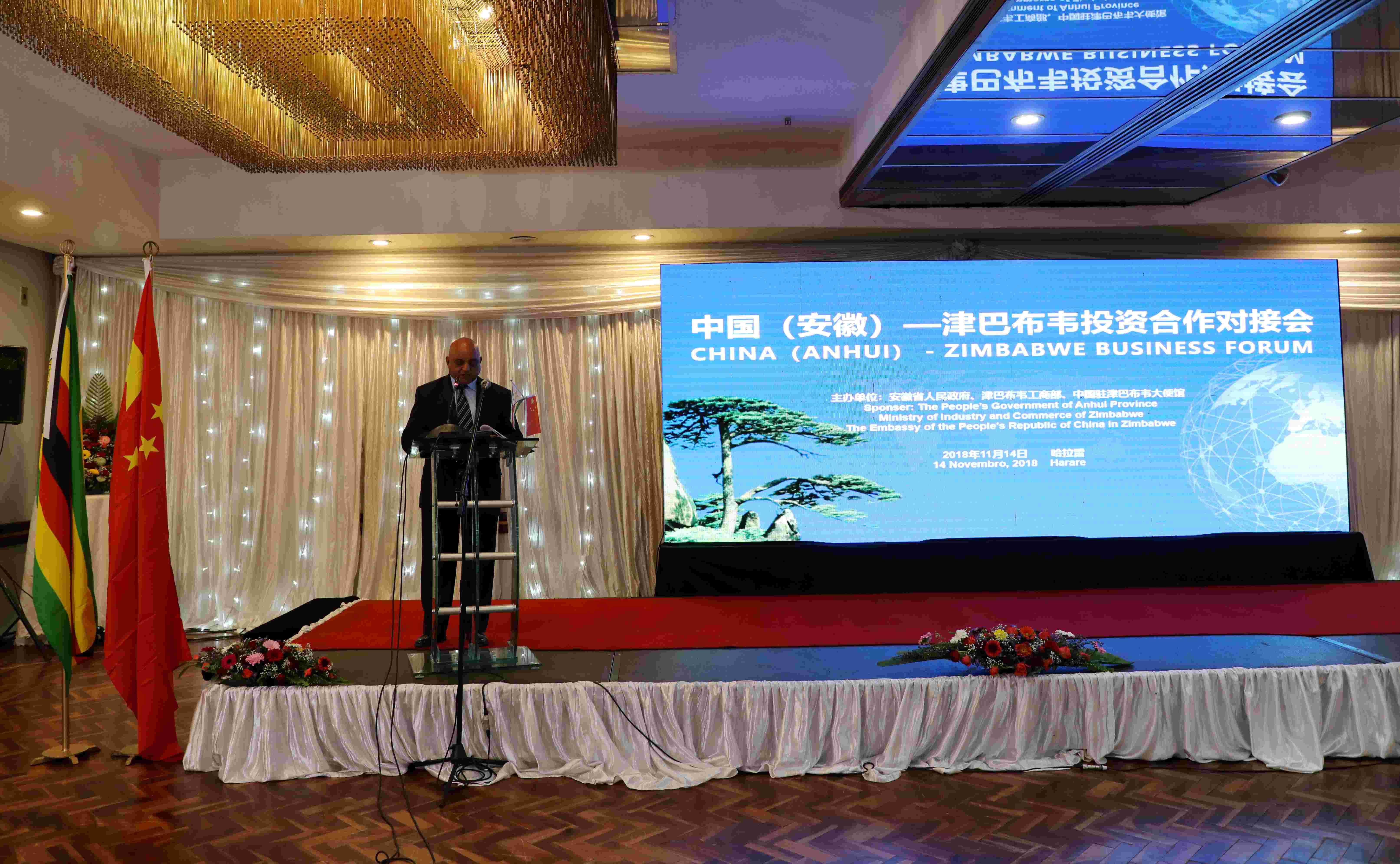 近日,中国(安徽)—津巴布韦投资合作对接会在津首都哈拉雷成功举办,安徽省副省长周喜安,中国驻津使馆临时代办赵宝钢、经商参赞陈宁,津工商部部长恩德洛夫、新闻部长莫妮卡、信息通讯部长卡赞比以及中津企业家代表等300余人出席活动。安徽省外事办公室主任孙勇主持对接会。