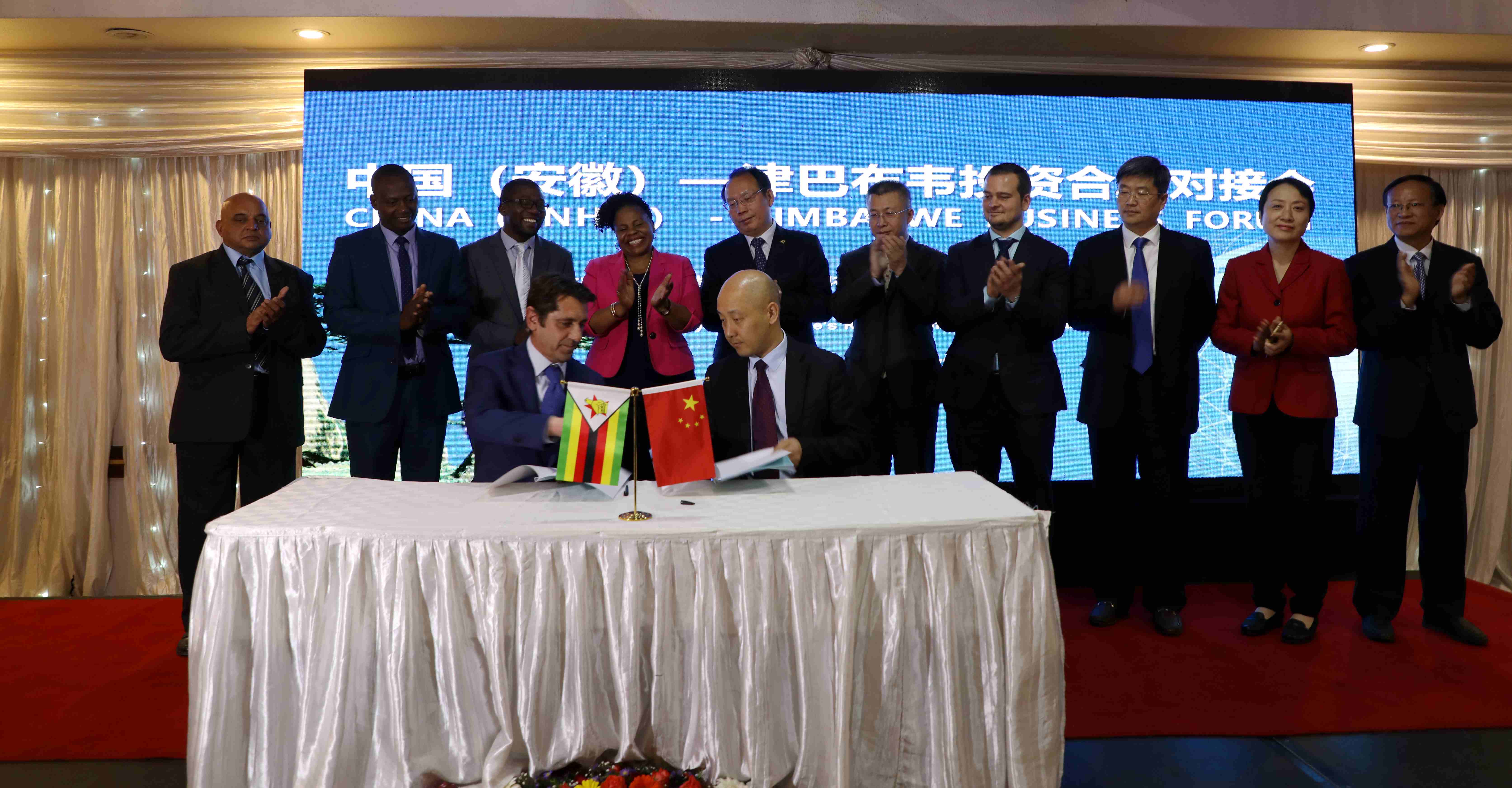 安徽水安建设集团股份有限公司、江淮汽车集团股份有限公司与津方现场签署了卢旁戈大坝合作谅解备忘录、汽车散件组装合作谅解备忘录。随后,来自安徽的34家企业与津巴布韦商界人士开展对接洽谈,行业涉及农业、矿业、能源、金融、商贸、化工、电子科技、基础设施建设等多个领域,达成广泛共识。