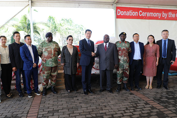 2019年3月20日,中国驻津使馆联合津华人华侨在哈拉雷举行抗灾物资捐赠仪式。中国驻津巴布韦大使郭少春、津国防部常秘鲁什瓦亚、津中资企业商会、华商会、华联会、中津野生动物保护基金会代表出席并致辞。仪式由使馆政务参赞赵宝钢主持,使馆工作人员、在津侨商界同胞及津方人员等近百人出席。