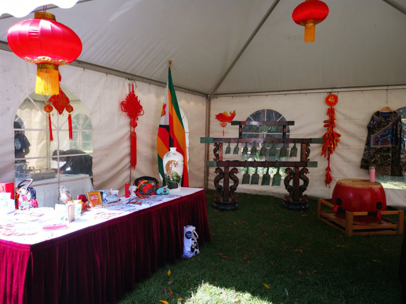 5月24日,津巴布韦第一夫人奥克西莉娅倡办的首届文化美食节活动在美丽的哈拉雷花园隆重举行。数十家津政府机构、当地企业、中小学校和驻津使馆积极参与,展示各自精美文化和美食,并上演精彩文艺演出。中国驻津巴布韦使馆积极响应,大使夫人王薇参赞携使馆工作人员与当地中餐厅共同作出精心准备,在中国展台向各方来宾展示了中华美食和特色鲜明、风格独特的中华艺术品,受到当地民众欢迎和喜爱。