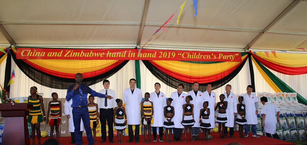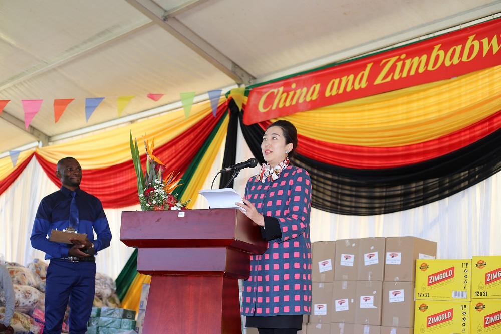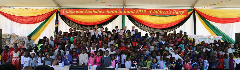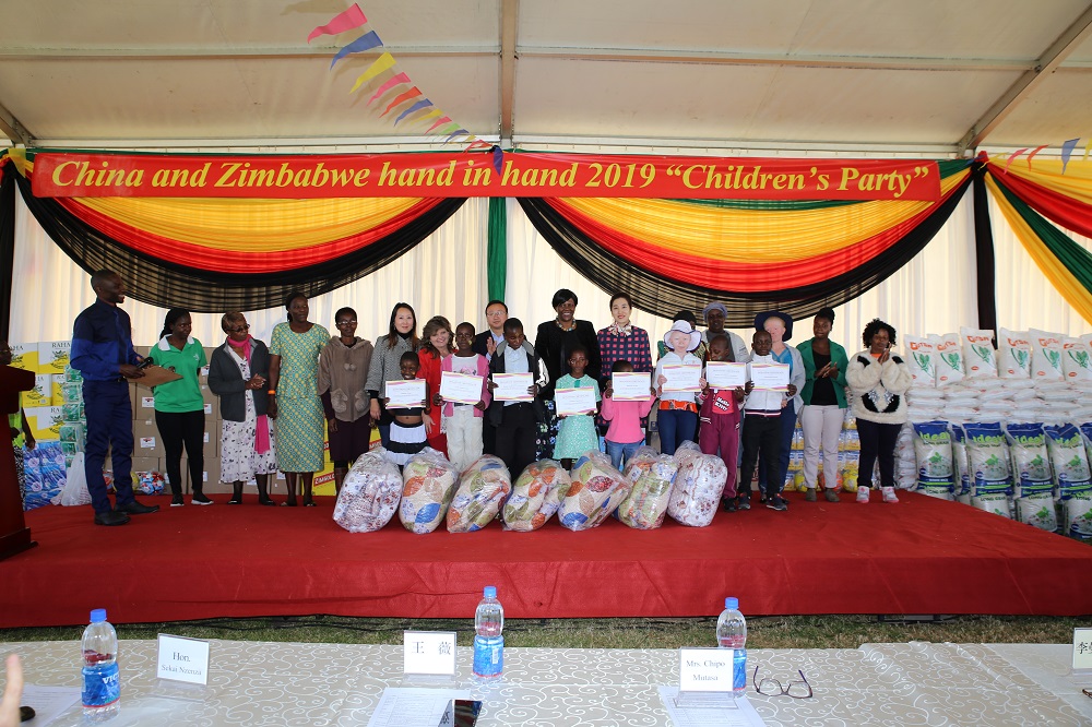 王薇参赞、李曼娟常务副会长、方海山总经理和津巴布韦福利部部长代表共同向十余所孤儿院代表捐赠了玉米面、食用油、被褥、毛毯和文体物品等物资,为孤儿们送去来自中国政府和在津华人的一片爱心。
