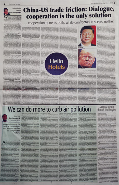 6月6日,郭少春大使在津第一大报《先驱报》发表题为《合则两利,斗则两伤---中美经贸摩擦:对话与合作是唯一解决办法》的署名文章。全文如下: